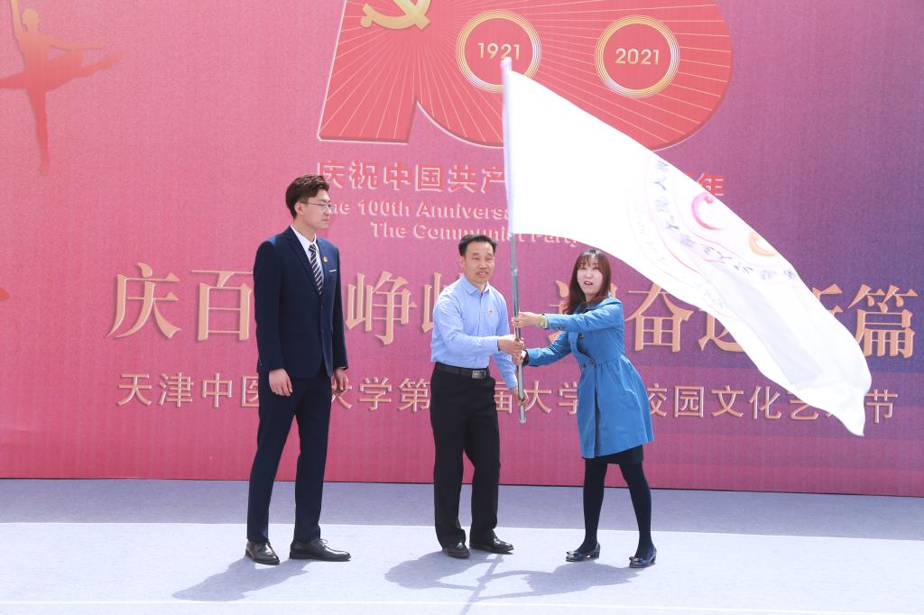 马克思主义学院党委书记曹永兴与校团委书记张晶共同为校学生会授大艺节旗帜,表达了对天中青年通过积极参加丰富多彩的校园文化活动,达到学史明理、学史增信、学史崇德、学史力行的殷切希望和祝愿。张晶书记表示,在庆祝建党100周年这一关键的历史节点上,希望广大师生能够积极参与各项校园活动,锻炼提高欣赏美、发现美、创造美的能力,响应习近平总书记的号召,把体艺结合的实用价值真正发挥出来,展现天中青年积极奋进的精神面貌。