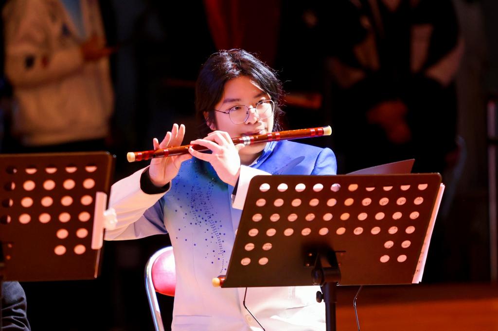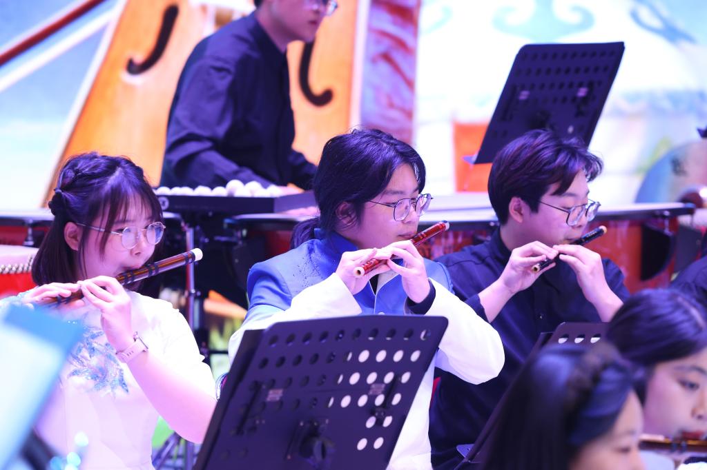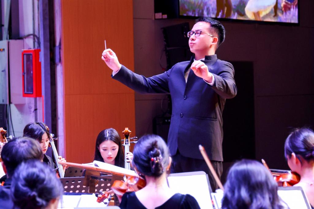 天津中医药大学大学生管弦乐团以一曲明快热烈的《法兰多拉》舞曲拉开演出序幕,灵动的旋律仿佛裹挟着法国普罗旺斯的节日欢腾之风,瞬间点燃全场氛围。紧接着,《培尔・金特》组曲缓缓流淌,引领观众步入神秘奇幻的北欧森林,沉浸式感受异域风情;《天堂电影院》的温情旋律轻柔响起,唤醒了观众心中尘封的银幕记忆与岁月情怀;《流浪地球》则以恢宏磅礴的音场,勾勒出中国科幻的宏伟史诗,尽显宇宙的浩瀚与人类的坚韧。上半场大轴曲目《月亮之上》采用交响化编配,致敬了中国航天人逐梦苍穹的浪漫征程,让经典流行旋律焕发出磅礴大气的艺术气象,也展现了传统与现代的完美融合。