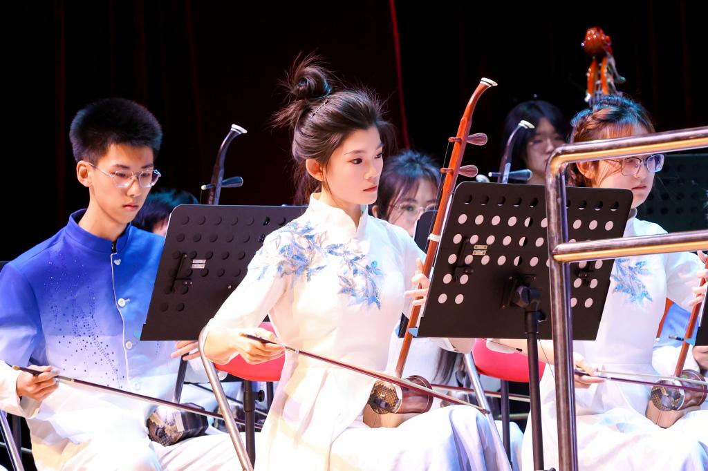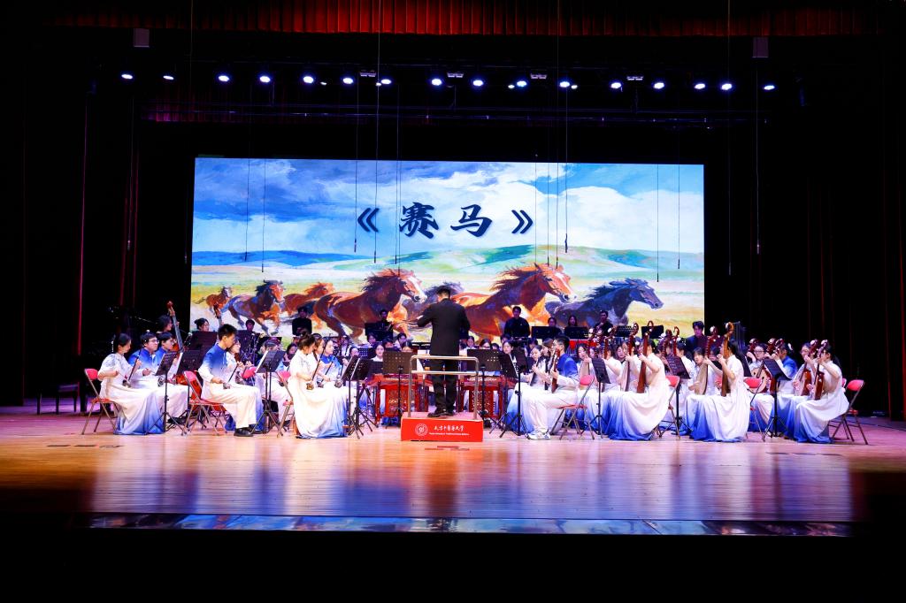 民族管弦乐团带来的《七彩之和》组曲,将整场音乐会推向高潮。乐曲以《绿・风之歌》《蓝・水之歌》《黄・山之歌》《青・月亮歌》《橙・太阳歌》依次铺陈,用灵动的旋律与醇厚的音色绘制出一幅绚丽多彩的民族风情长卷,生动展现了中华大地上各民族文化交融共生、和谐发展的美好图景。乐曲终了,现场热情丝毫不减,民族管弦乐团以一曲激昂奔放的《赛马》返场致谢。弦丝跃动、弓鸣阵阵,旋律中仿佛有万马奔腾、尘土飞扬,将草原的辽阔与豪迈展现得淋漓尽致,为整场演出画上了充满活力与激情的圆满句点。