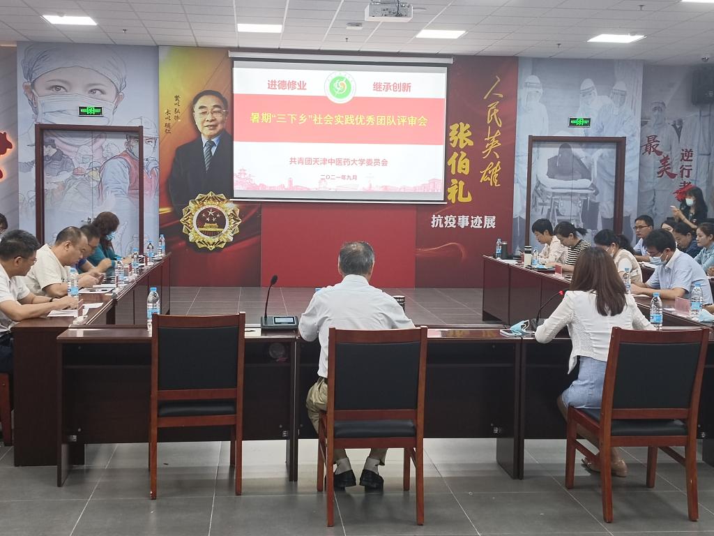 为深入学习贯彻习近平新时代中国特色社会主义思想和习近平总书记“七一”重要讲话精神,引导青年在社会课堂中受教育、长才干、作贡献,在观察实践中学党史、强信念、跟党走。校团委于7月启动2021年天津中医药大学大学生暑期“三下乡”社会实践活动。经过广泛宣传,各级团组织积极申报,经过遴选,共有28支团队被选为校级社会实践立项项目。为深化暑期社会实践活动效果,扩大活动影响力,9月16日下午,校团委在大学生活动中心会议室举办了暑期“三下乡”社会实践优秀团队评审会。各学院党政领导及校团委书记张晶作为评委出席了此次评审会。