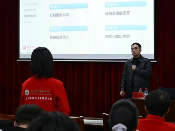 在场景实战部分,他则聚焦团学业务全流程,涵盖文案写作、活动策划、数据治理等具体场景。通过案例演示,学员们学习了如何利用AI辅助新闻稿审核、活动方案生成、学情数据分析及问卷整理等工作,实现团学工作的“减负增效”与质量提升。