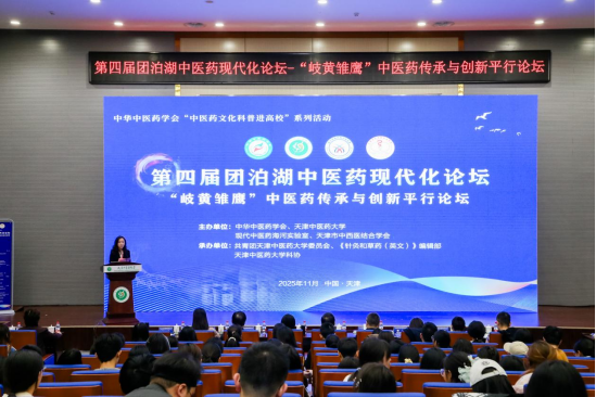 2025年11月8日,中华中医药学会“中医药文化科普进高校”系列活动第四届团泊湖中医药现代化论坛——“岐黄雏鹰”中医药传承与创新平行论坛在天津中医药大学求真报告厅召开。本次论坛由中华中医药学会、天津中医药大学、现代中医药海河实验室、天津市中西医结合学会主办。天津中医药大学副校长张俊华教授,中华中医药学会科普部负责人郭继华主任,陕西中医药大学附属医院党委副书记、院长李京涛教授,中国中医科学院中药资源中心郭娟研究员出席论坛。