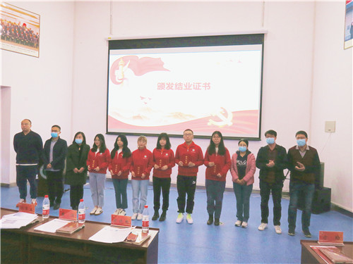 在一年培养期结束后,学校通过对学员在教学考勤、日常表现、学习心得等方面的表现进行考核,38名学员均达到结业标准,顺利结业。各位领导老师为第三期“青马工程”学员颁发结业证书,给予充分的鼓励和肯定。